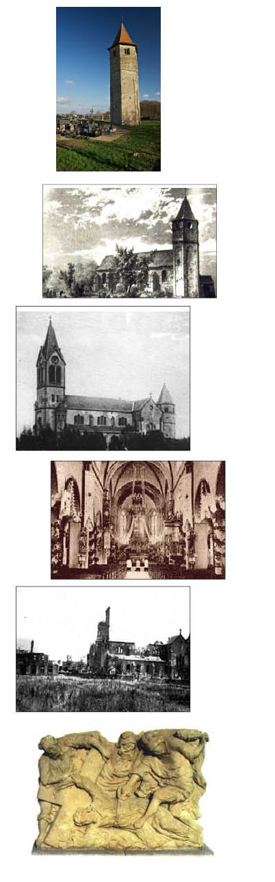 La tour hexagonale romane de l’ancienne église de l’Usselskirch représente une énigme archéologique. Sa forme, sa hauteur, son arcature aveugle sont insolites et posent des problèmes pour l’heure sans solution. L’étymologie même d’Usselskirch partage les historiens. Pour les uns, le nom, aujourd’hui altéré, signifiait église de Ussel ; pour les autres, ussels serait dérivé du mot gaulois uxellos signifiant élevé, lumineux. Selon cette dernière thèse, qui s’est transmise de génération en génération, la tour, qui domine le vallon, aurait été un repère le long de la voie romaine Metz-Trèves. D’ailleurs les villageois l’appellent depuis toujours "Réimertuerm", la tour romaine. La première mention officielle de ce monument date du XIe siècle. La tour constituait alors le clocher d’une église romane fondée par les moines bénédictins de l’abbaye Saint-Maximin de Trèves (gravure de Auguste MIGETTE). Elle apparaît en 1023 sous l’appellation Lutzelen Kirche, puis Lutzelenkiricha en 1182, dans les déclarations de biens de l’abbaye. A la fin du XVIIIe siècle, elle était le siège d’une grande paroisse qui regroupait les villages de Boust, Haute et Basse-Parthe, Breistroff, Boler, Evange et Roussy. Menaçant ruine, l’église fut rasée en 1880 et un vaste bâtiment fut construit en lieu et place, dans le style néo-roman. Un nouveau clocher couronnait l’édifice, deux fois plus haut que l’ancienne tour qui resta accolée à l’ensemble en tant que tourillon d’angle. Avec une nef pouvant contenir 600 places, la nouvelle église d’Usselskirch était fièrement appelée petite cathédrale. Un presbytère et une école complétaient l’ensemble. L’église fut détruite, tout comme le presbytère et l’école attenants. Seule la tour resta debout. Sous l’occupation et le Wiederaufbau, la tendance n’était pas vraiment à la reconstruction des églises. Déjà classée monument historique depuis 1911, la tour put néanmoins être préservée. Tout le reste fut rasé. Restaurée dans les années 70, elle intéresse toujours les amateurs de vieilles pierres... et une nouvelle église a été construite dans les années 60 à 700 m de l’Usselskirch.